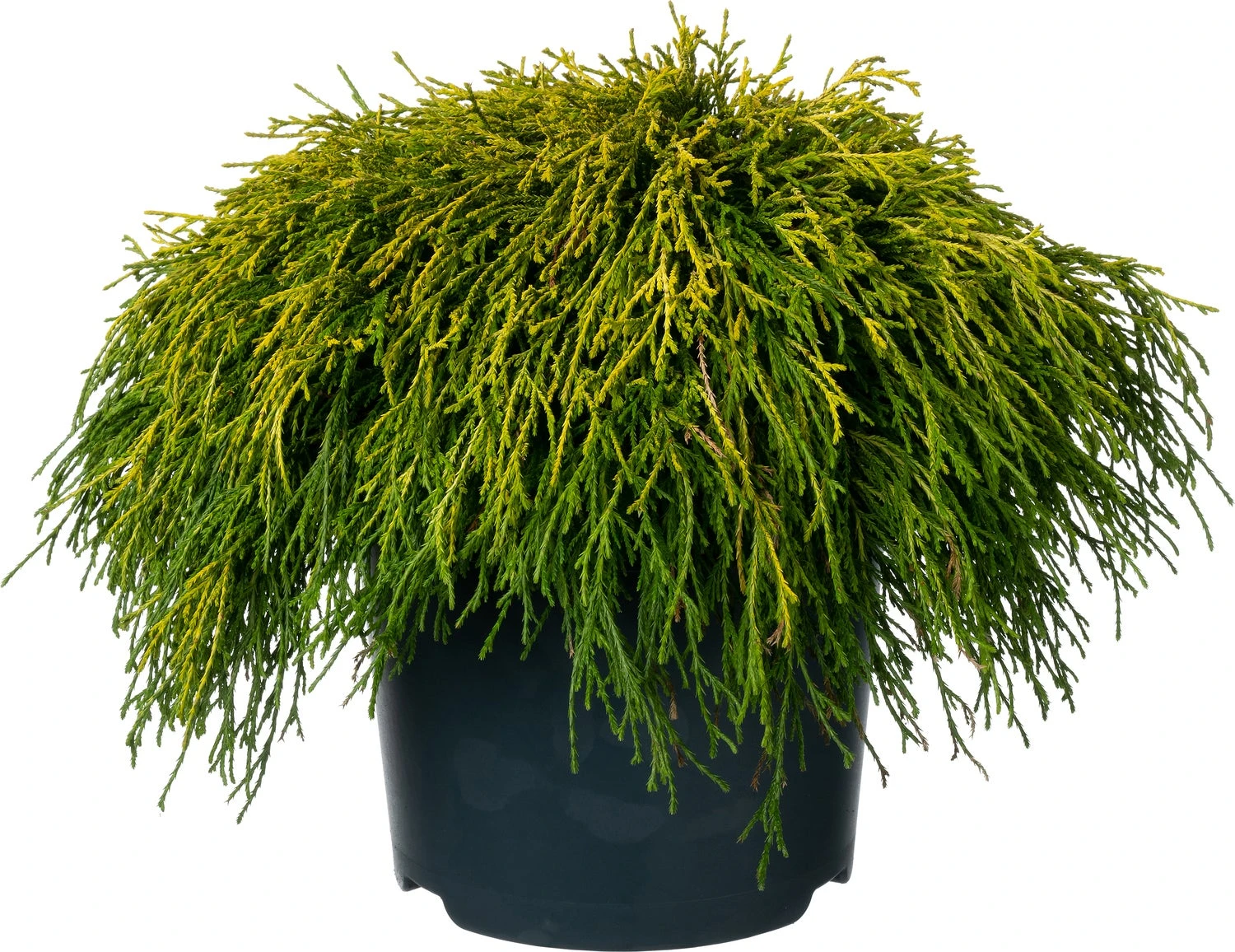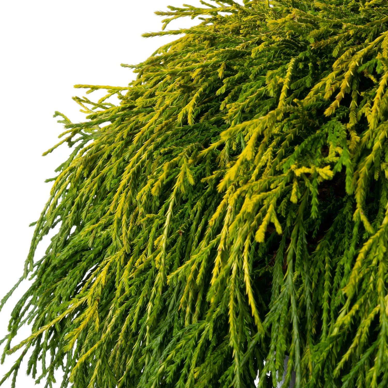 Een mooie soortje met een wat hangende takjes waardoor deze conifeer nooi erg hoog wordt maar meer in de breedte gaat. Het soort begint met gele/ gouden takjes die langzaam groen kleuren naar mate de tijd verloopt. De fijne schubbige takjes groeien langzaam.