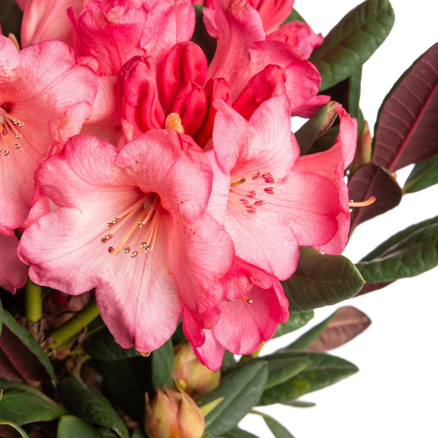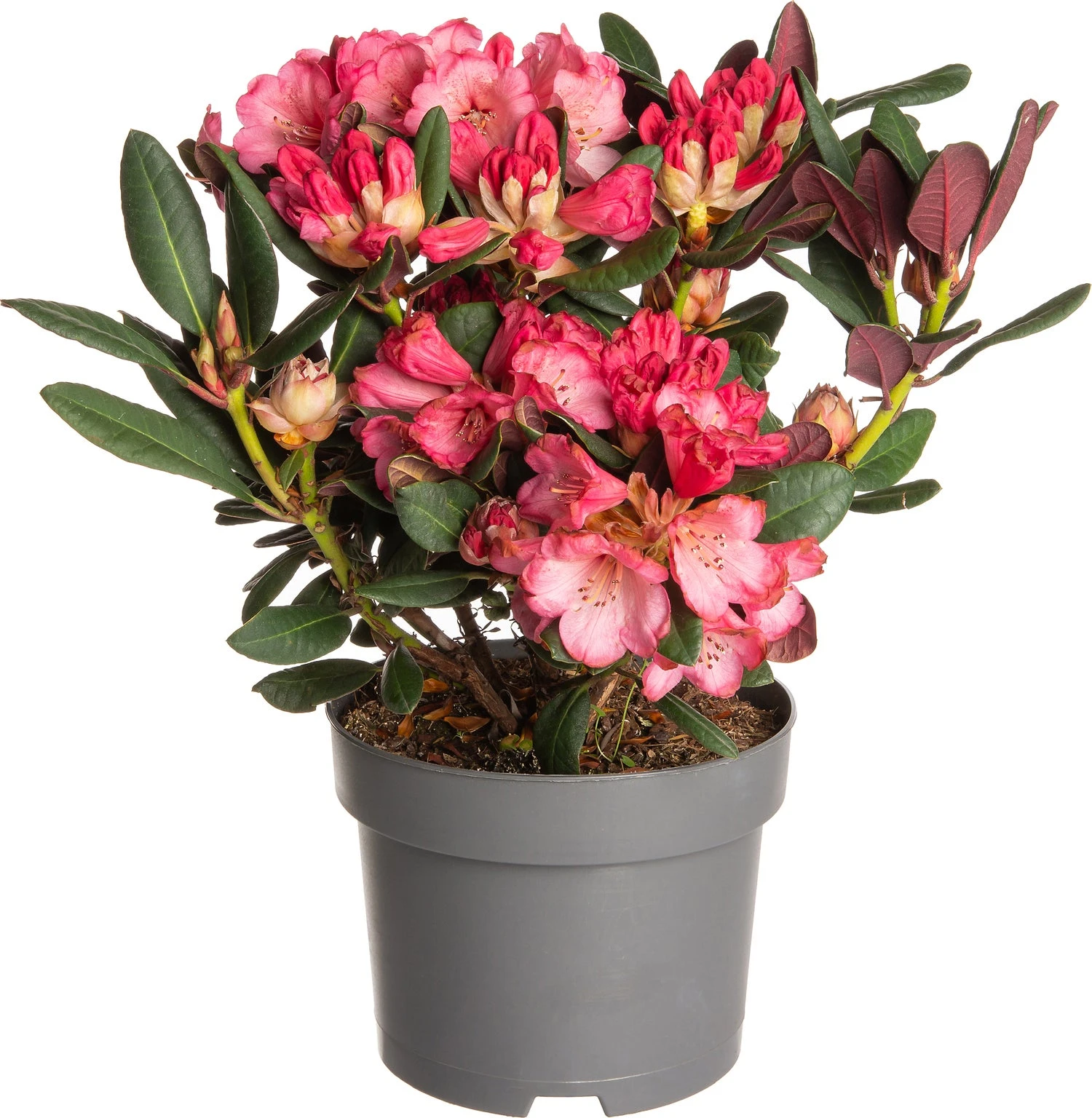 Rhododendrons zijn heel populair in Nederland. Ze hebben leerachtig blad waardoor ze extra sterk zijn. Ze komen voor in zowel bladverliezend als wintergroene soorten. Deze Wine & Roses heeft alleen al prachtig rood blad bij het uitlopen en de onderkant van het blad blijft ook rood (Wine) dus het blad is tweekleurig. Hij wordt ongeveer 100 cm en krijgt mooie roze (Rozes) bloemen en is winterhard.