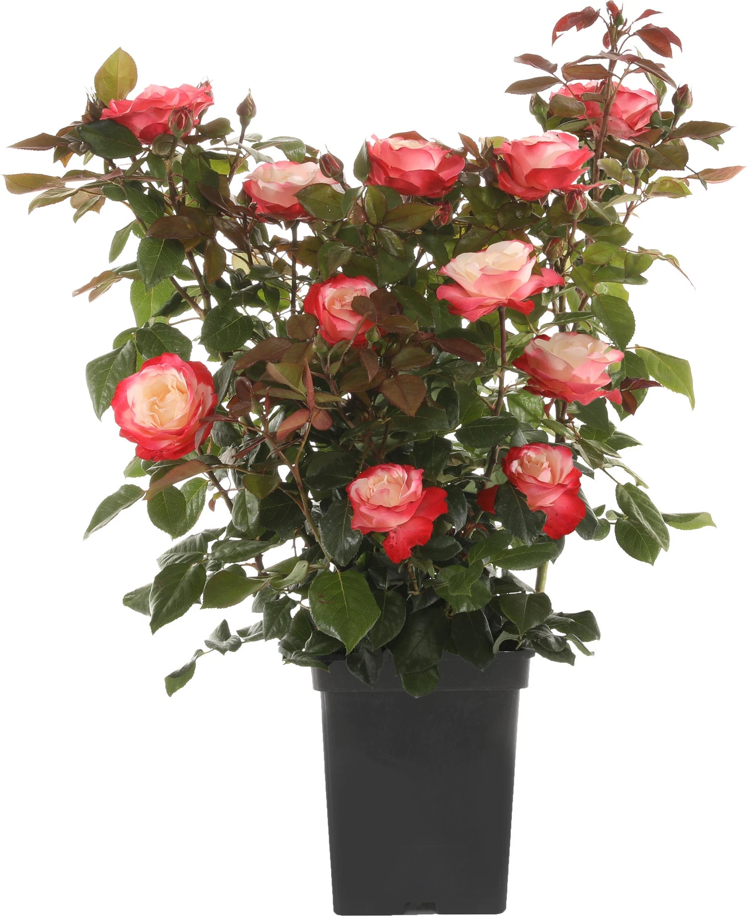 Deze grootbloemige trosroos geeft prachtige bloemen die een bijzondere rood-witte kleurcombinatie. Het is een sterke plant en het blad heeft in het begin een rode blos en wordt daarna heldergroen. De stelen zijn heel stevig. De plant wordt ongeveer 80 cm hoog en is goed bestand tegen ziekten en ook geschikt voor in een pot. De bloemen zijn ook mooi op de vaas/ Door de uitgebloeide bloemen te verwijderen wordt de bloei bevordert. Hier kunt u altijd wel een plekje voor vinden. Zet hem op een zonnige of licht beschaduwde plek en hij zal u tegemoet stralen. Bijkomend voordeel, rozen zijn gemakkelijk in onderhoud. Zorg eenvoudig en snel voor een goede biodiversiteit in de tuin met deze schoonheid.