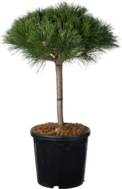 Een kleiner blijvende naaldboom die in een bol groeit. Ook op stam zal er een paraplu vorm ontstaan. De plant heeft lange naalden, groeit langzaam en is mooi donker groen van kleur.